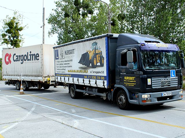 Osoby przygotowujące się do prawa jazdy kat. B+E szkolimy na zestawach przeznaczonych do jazdy z przyczepą.